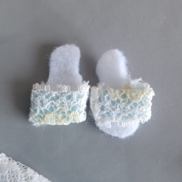 Nylon gown with lace overcoat. Including the HTF slippers (with slightly brown discoloration)