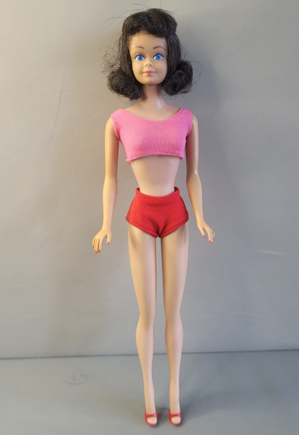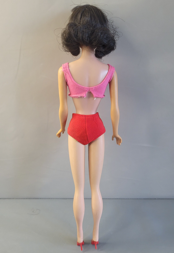 Vintage Barbie #860 - Midge / Brunette met rood/ roze bikini en rode OT's schoentjes ( Japan)