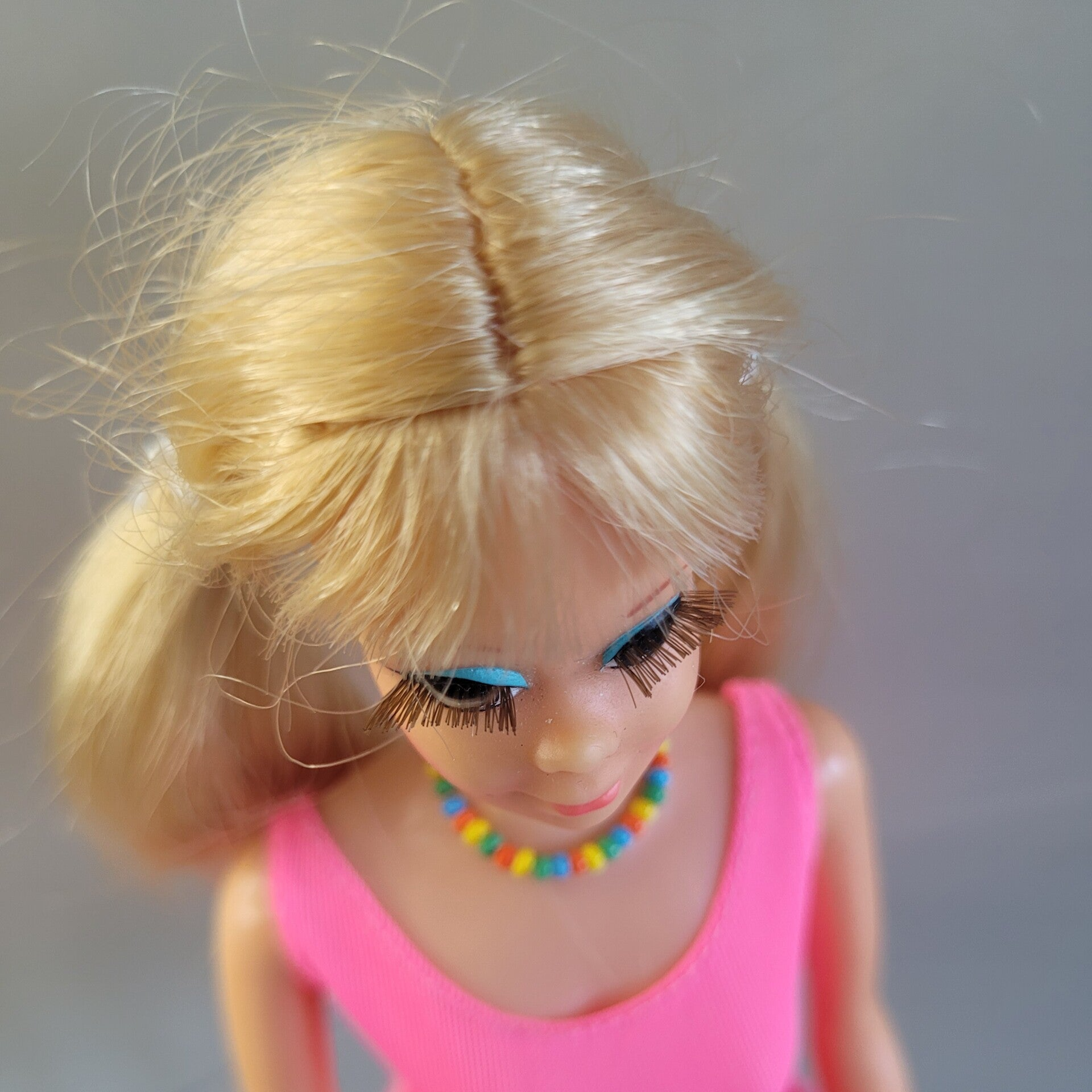 In good condition, beautiful, great full lashes, and wearing original swimsuit. No glasses included.