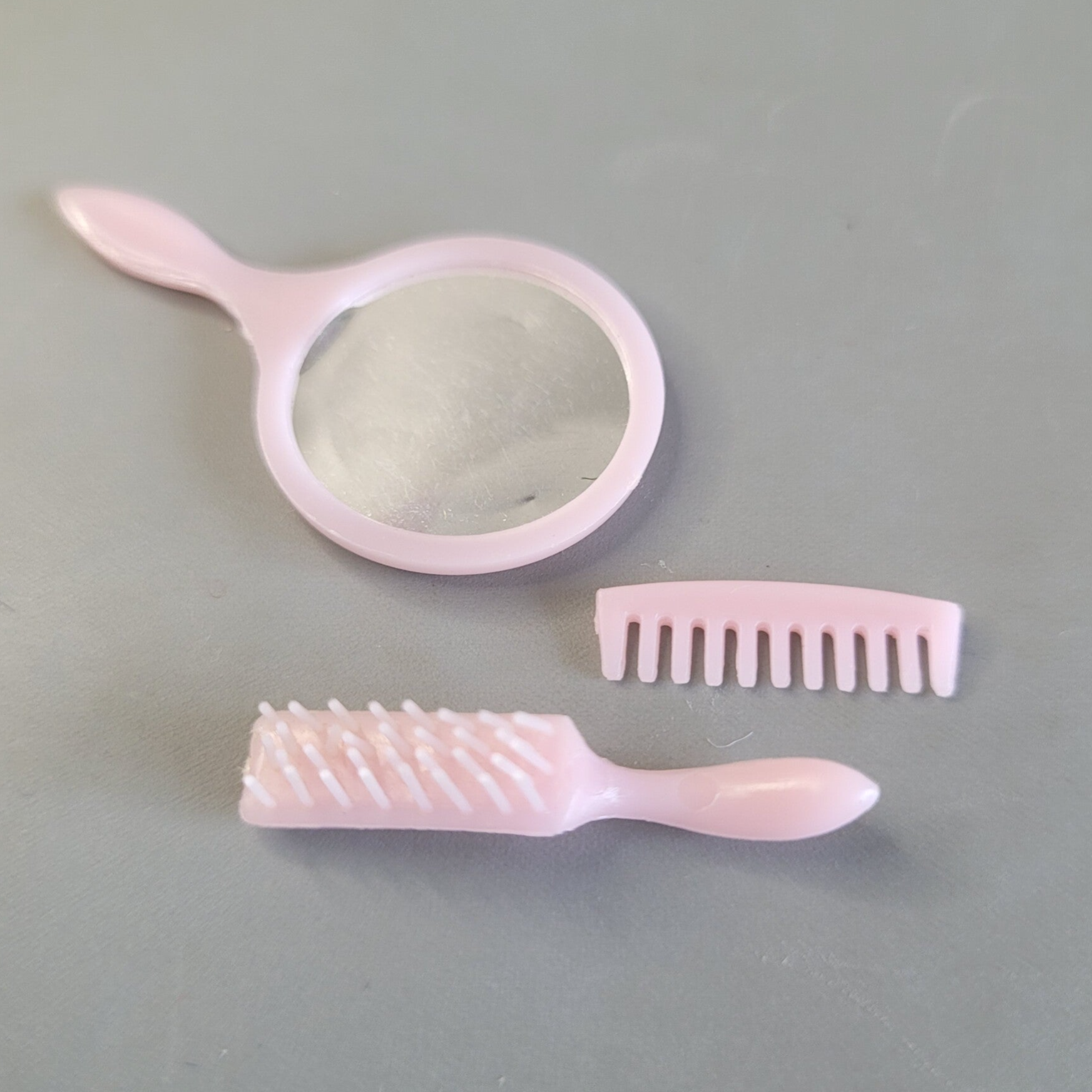 Vintage Boudoir set - Spiegel - Borstel en Kam / roze
