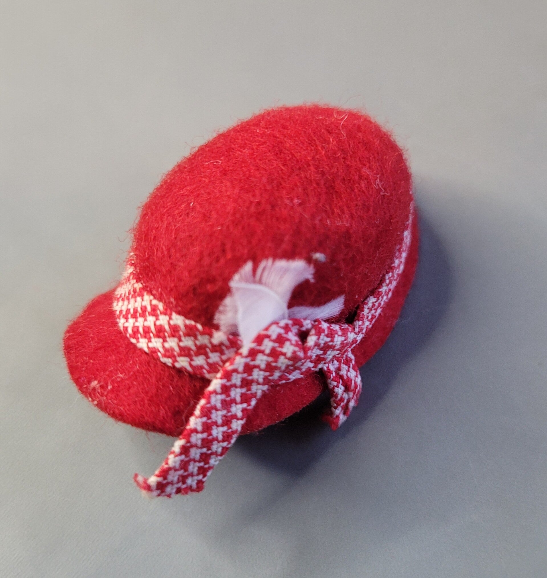 Red felt hat with feather